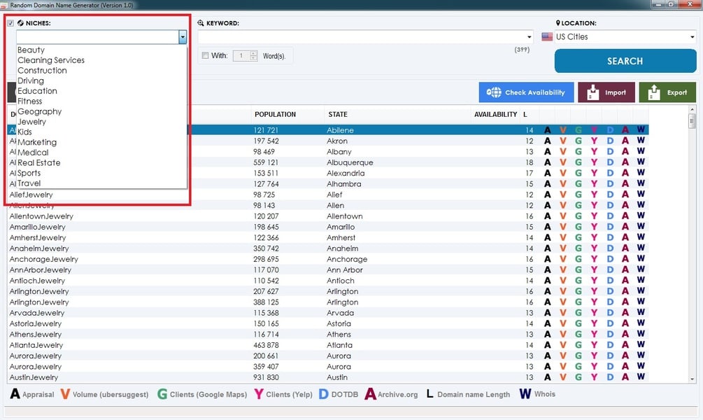 ✅ Smart Filtering: Filter niches by word count or population.