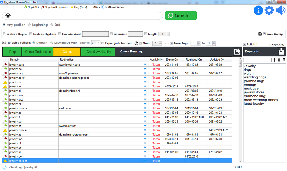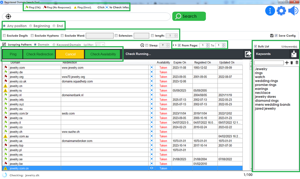 Domain Name – Redirection – Availability – Expiration Date – Registration Date.
